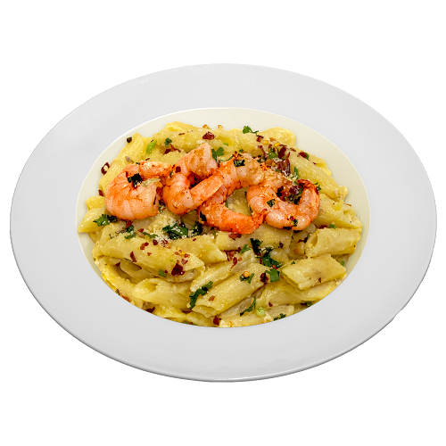 king prawns cooked in olive oil, garlic butter, chilli, lemon juice, white wine, parsley & parmesanPasta Opt