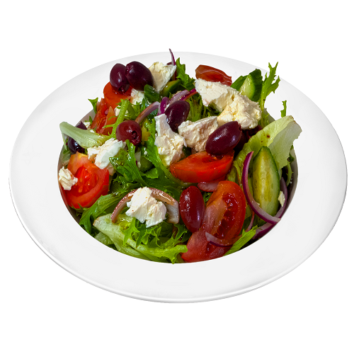 Leafy greens, green olives, fetta cheese, cucumber, tomatoes & Spanish onions, finished with balsamic vinegar dressing.0
