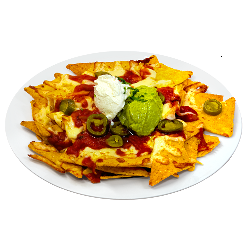 Corn chips, jalapeños, bolognese, chunky salsa, mozzarella, served with guacamole & sour cream on the side