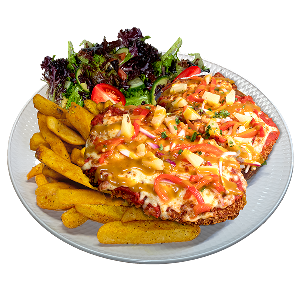 Chef Special$22.90Chicken, salami, capsicum, red onions, semi dried tomato, olives cooked in napoli, cream & finished w parmesan & parsley.×