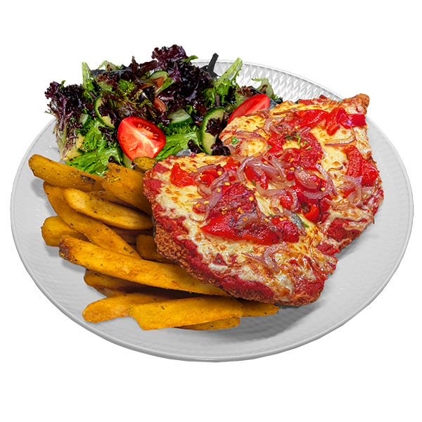 Mushrooms, garlic, Spanish onions, semi-dried tomatoes, capsicum & olives cooked in Napoli sauce with cream, finished with parmesan & parsleyPasta Opt